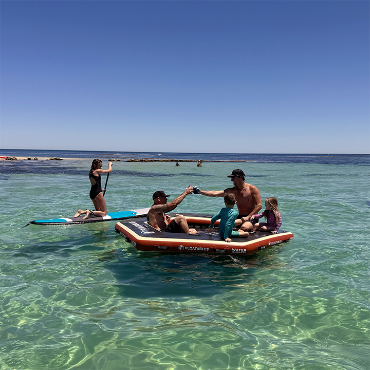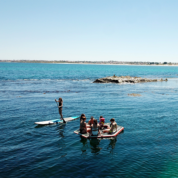 Set up just off the beach for a platform to swim to and play from. Providing a comfortable and safe place to rest up or float around. It's also great onshore as a place to sit on and rest, sand free when lounging and sunbaking.