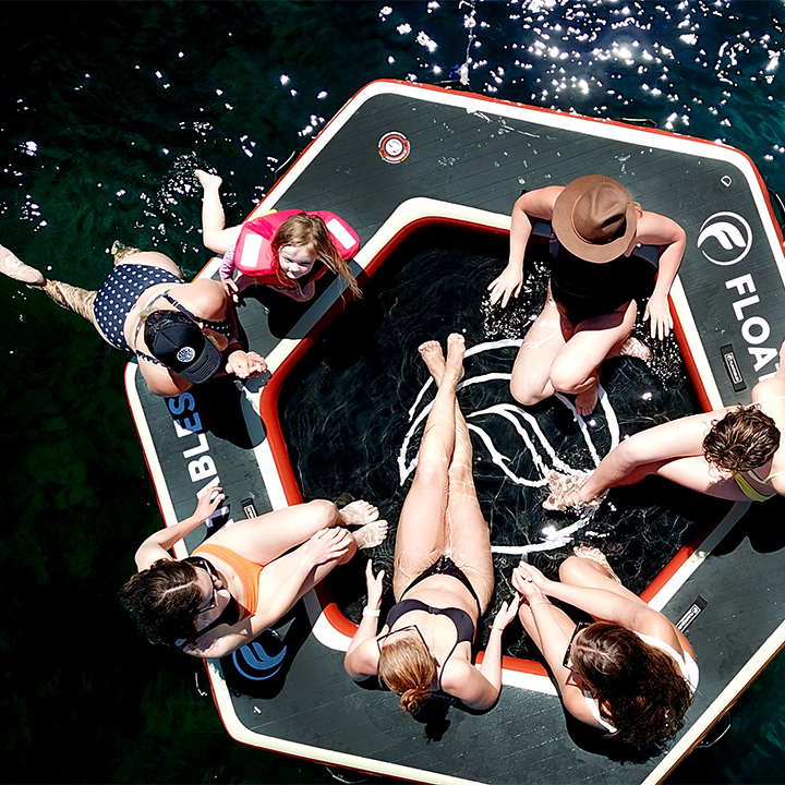 Creating more space/real estate from you boat’s restraints, and the ability to connect to other boats and docks makes the possibilities endless. It's a platform to elevate and family and social atmosphere.